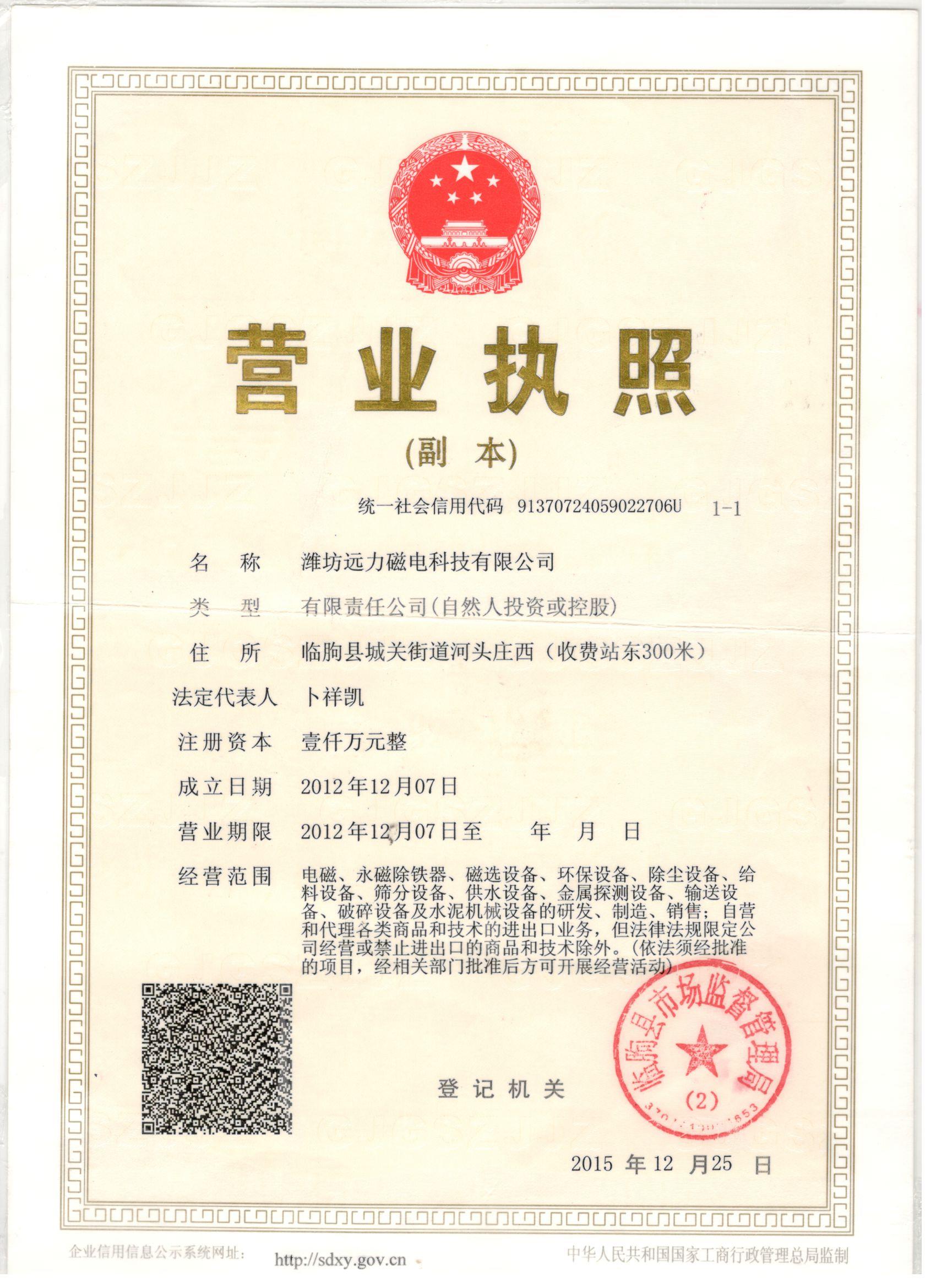 濰坊遠力磁電科技有限公司專業(yè)生產除鐵器,電磁除鐵器的廠家,是集永磁除鐵器,永磁滾筒,磁選機,除塵器,尾礦干排科研開發(fā),工程設計,生產安裝,調試服務于一體的磁電設備生產企業(yè)。